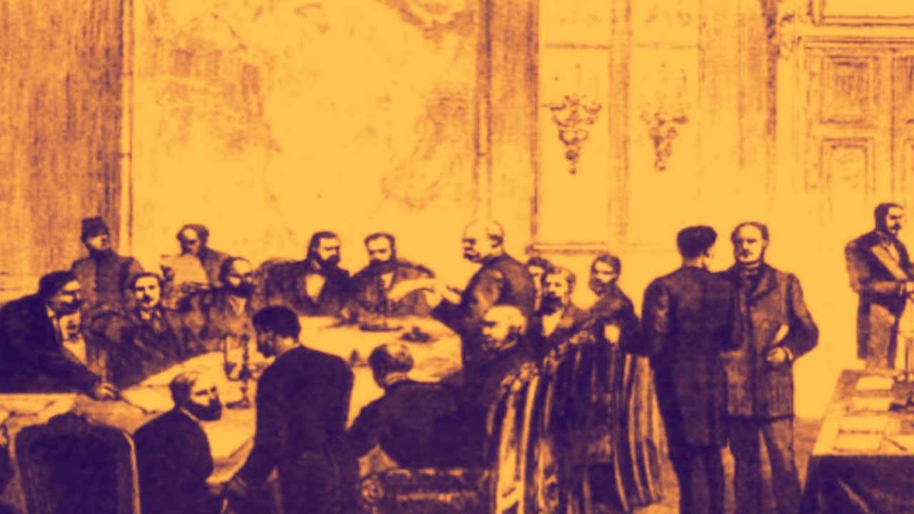 Uma reunião em 1884-1885 que regulou a partilha da África, sem representação africana. Saiba mais em Era Vitoriana.