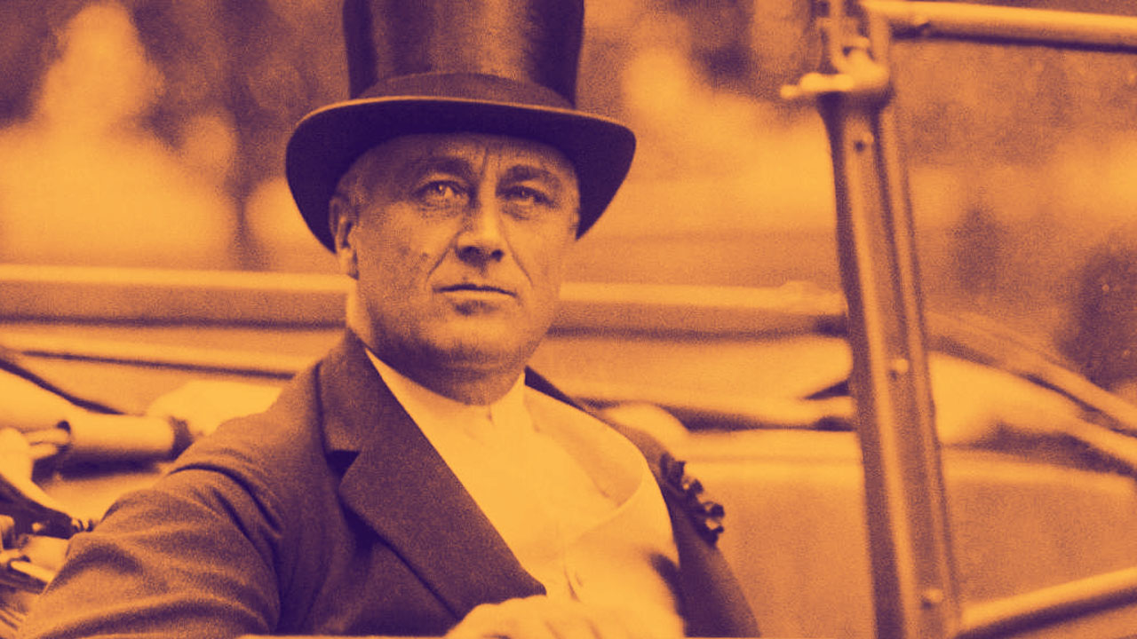 FDR venceu prometendo “New Deal”. Em 1933, feriado bancário e Fireside Chats via rádio, como Guglielmo Marconi inventou.