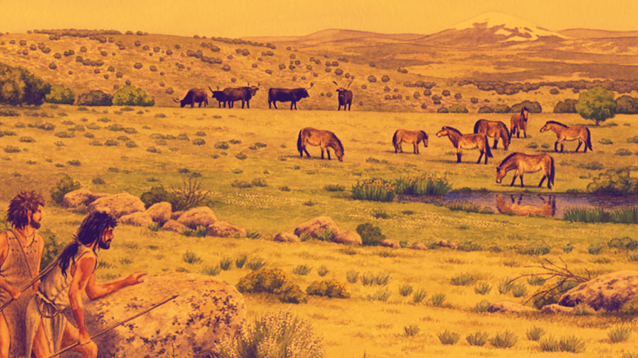 É a era da pedra lascada, com caçadores-coletores.